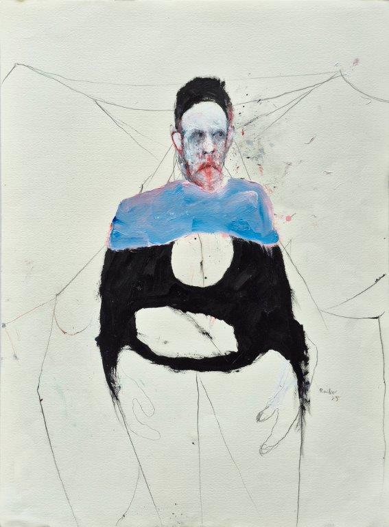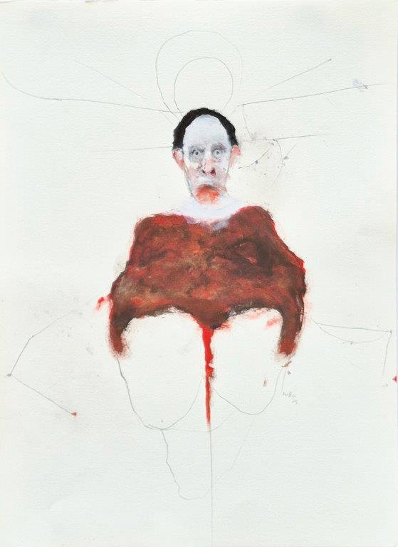 Technique mixte sur papier par Benoit Genest Rouillier à vendre en galerie d'art à Montréal. « Le président des peintres » disponible à la Galerie Blanche.