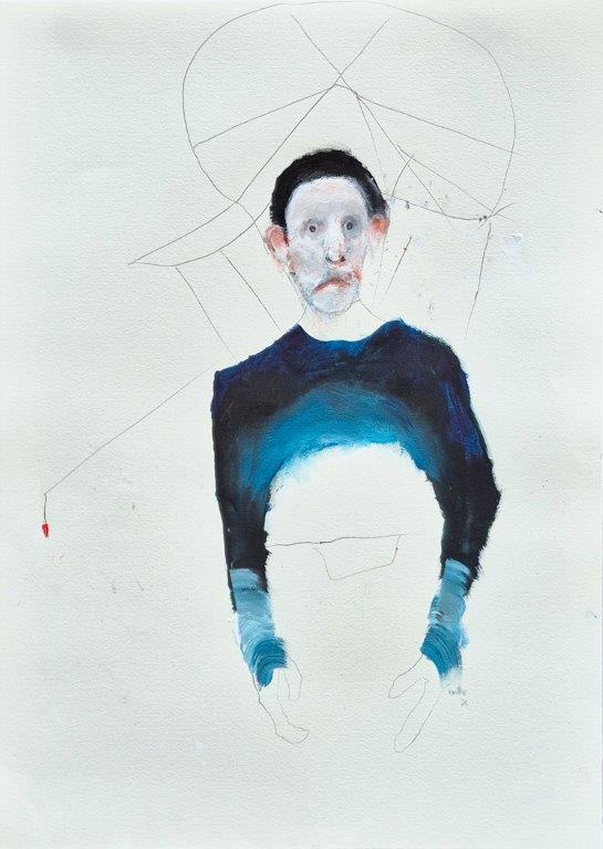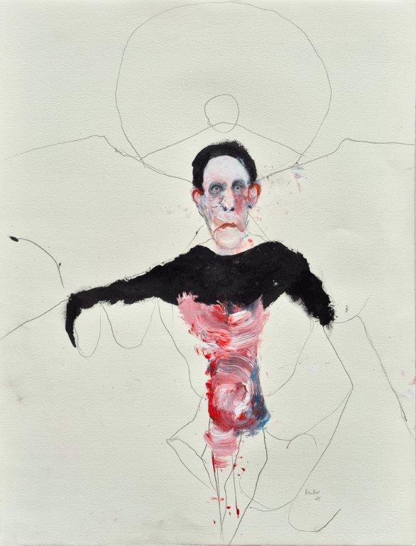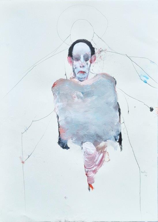 Technique mixte sur papier par Benoit Genest Rouillier à vendre en galerie d'art à Montréal. « Les yeux discontinués » disponible à la Galerie Blanche.